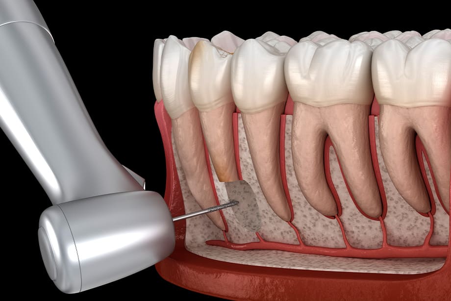 むし歯が進行した場合は、まずは歯の根っこの中をきれいにする根管治療を行います。しかし、根管治療を行っても治らない場合は、歯根端切除術を行うことで抜歯を避けて、ご自身の歯を残せる可能性があります。