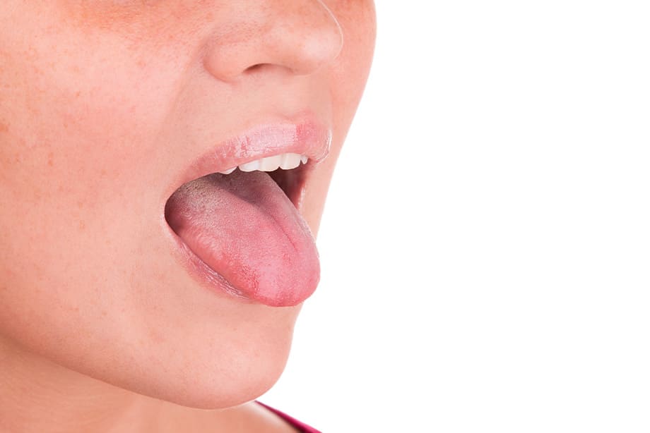 常在菌であるカンジダ菌によって発症し、白い苔のようなものが舌に付着する、口の中がヒリヒリするといった症状が見られます。白い苔は比較的容易に拭い取ることができますが、慢性の場合は治療が長期にわたることもあります。